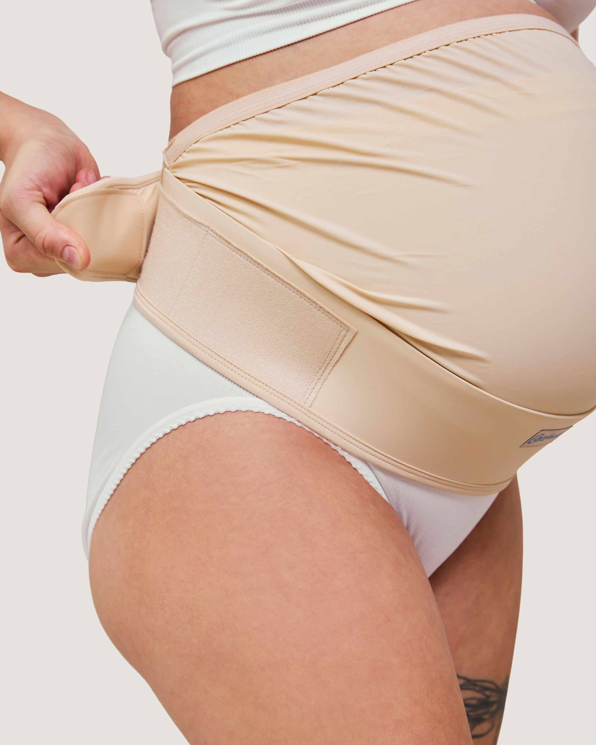 Det løfter vægten fra maven, aflaster ryg og hofter og giver fast støtte hele vejen rundt om kroppen – samtidig med at det er diskret under tøjet. Du justerer det nemt, så det passer til dig og din dagsform.